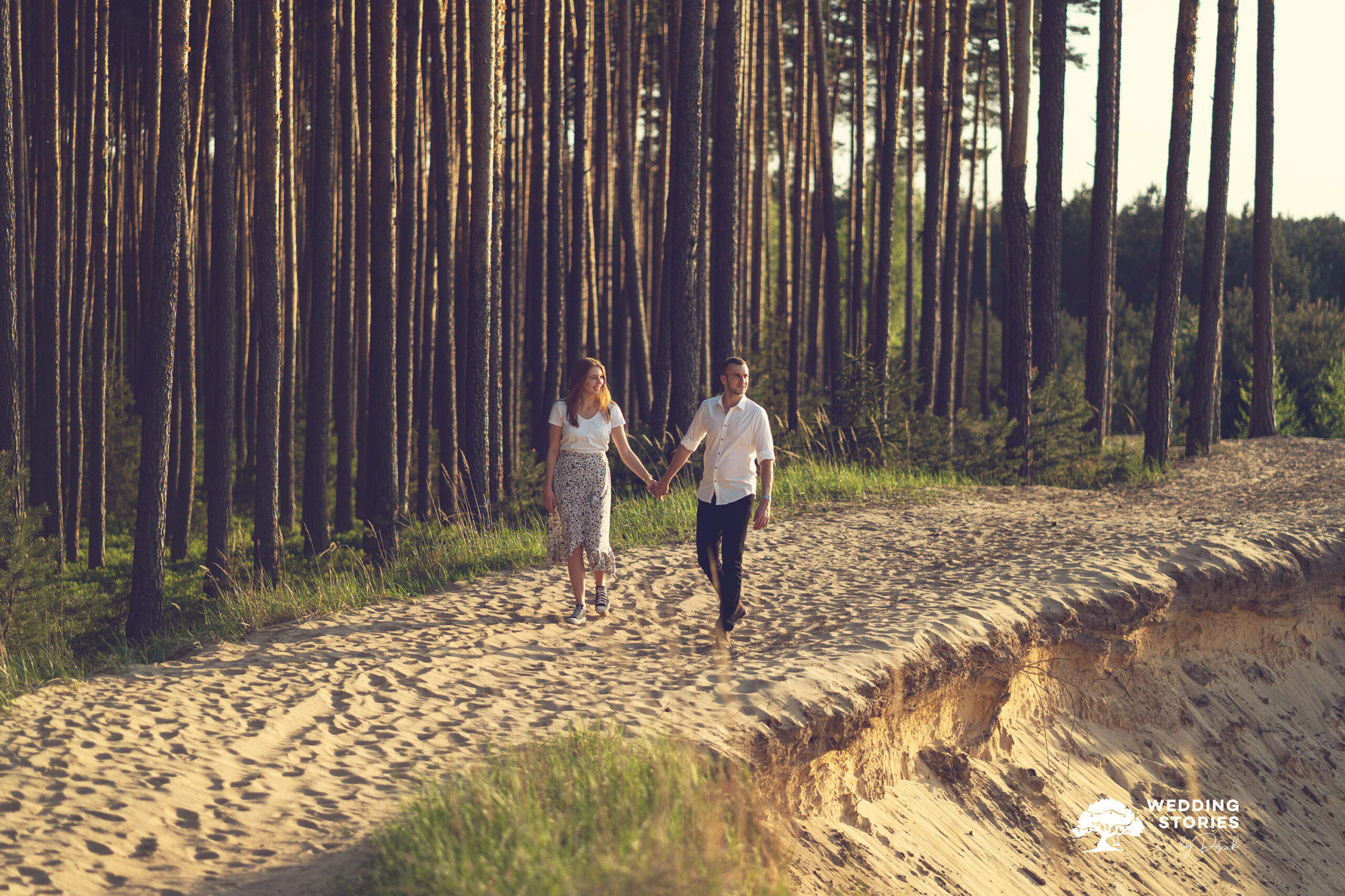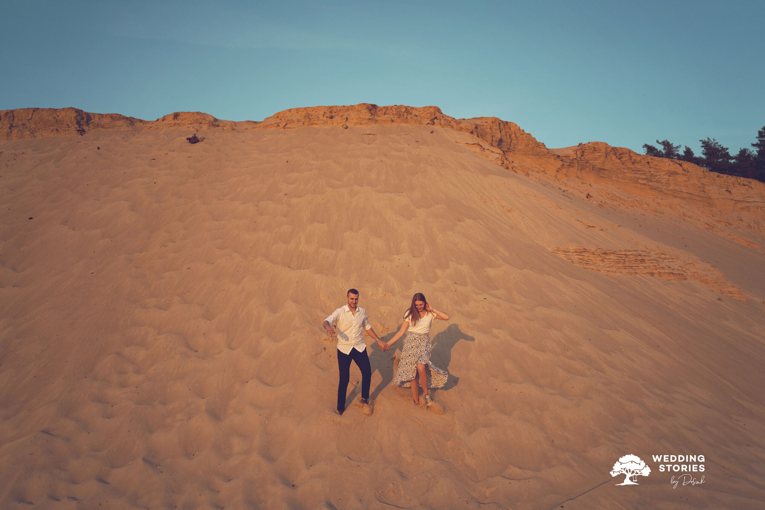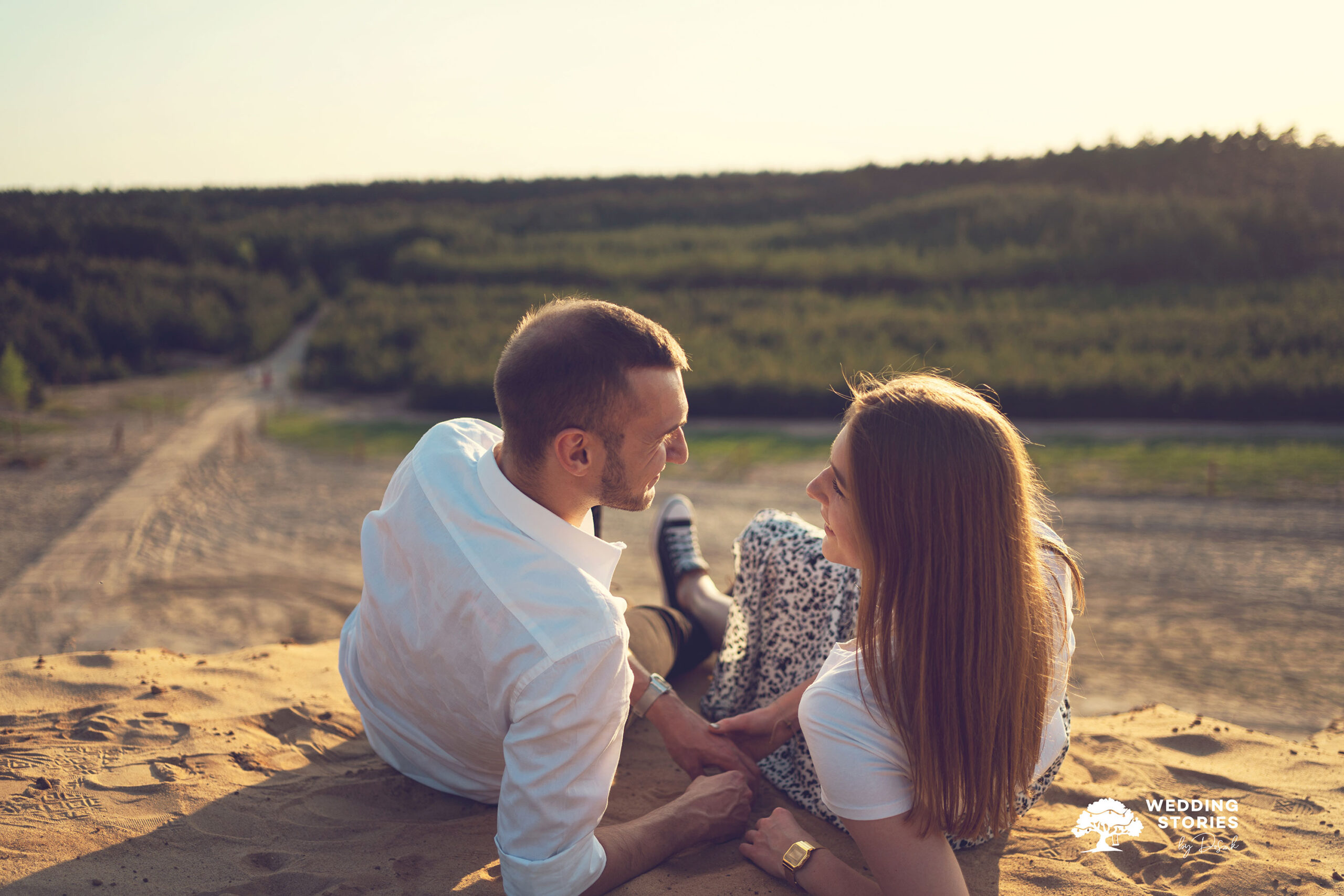 Podczas tej sesji postawiłem na prostotę i naturalne światło. Fotografowanie na wydmach daje ogromne możliwości — szczególnie o zachodzie słońca. Światło staje się wtedy miękkie, ciepłe i bardzo plastyczne. Dzięki temu każda scena nabiera lekkości i spokoju. Nie potrzeba skomplikowanych ustawień ani sztucznego pozowania. Wystarczy być tu i teraz. To właśnie w takich momentach powstają najbardziej autentyczne kadry. Dlaczego warto wybrać wydmy w Kosowcach na sesję narzeczeńską?
